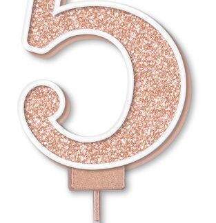 Age 5 Rose Gold Glitter Moulded Pick Candle