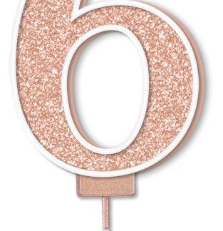 Age 6 Rose Gold Glitter Moulded Pick Candle