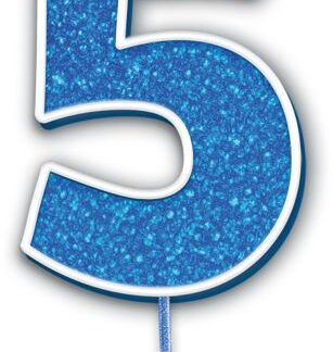 Age 5 Blue Glitter Moulded Pick Candle