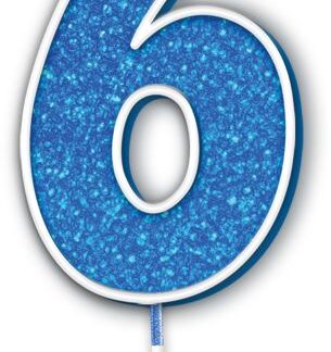 Age 6 Blue Glitter Moulded Pick Candle