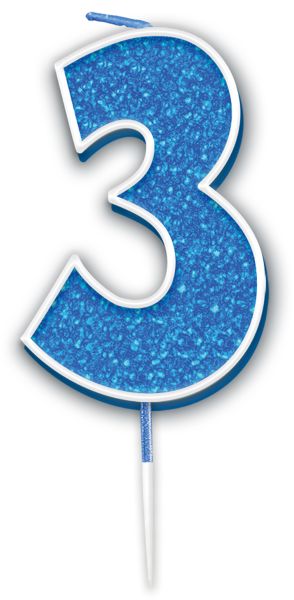 Age 3 Blue Glitter Moulded Pick Candle