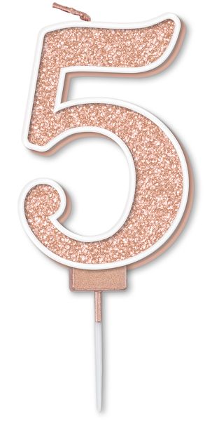 Age 5 Rose Gold Glitter Moulded Pick Candle
