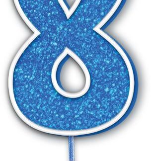 Age 8 Blue Glitter Moulded Pick Candle