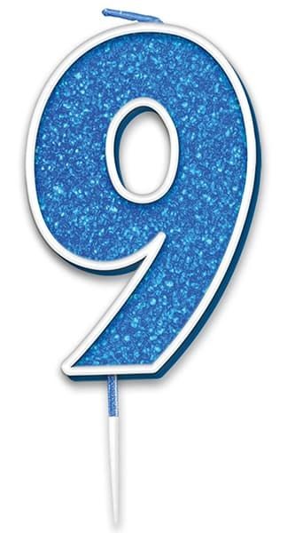 Age 9 Blue Glitter Moulded Pick Candle quantity