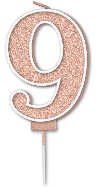 Age 9 Rose Gold Glitter Moulded Pick Candle